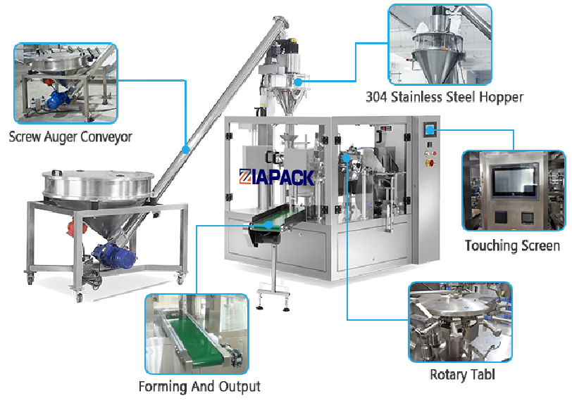 Հագեցած կաղապարով եւ պտուտակավոր վերելակով, այն լայնորեն տարածվում է փաթեթավորման փոշու վրա, ինչպես, օրինակ, լվացքի փոշի, կաթի փոշի, ալյուր, համեմունք, կոկո փոշի, սուրճ եւ այլն: